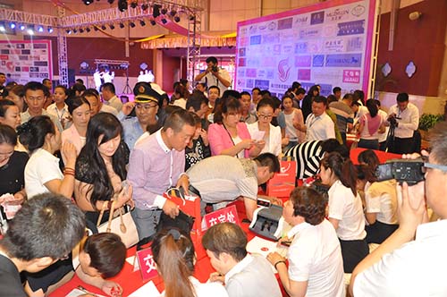 8月6日活動當(dāng)天,四季青國際服裝城招商發(fā)布會現(xiàn)場人頭攢動、熱鬧非凡,一場以四季青加盟品牌的時(shí)尚服裝秀正在精彩上演。主辦方臺上為大家演示全新的020電子商務(wù)運(yùn)營模式,臺下的觀眾邊聽邊記,更有著急的客戶,按耐不住激動的心情,紛紛要求交錢定鋪。工作人員穿梭于客戶之間,一一回答他們提出的問題。